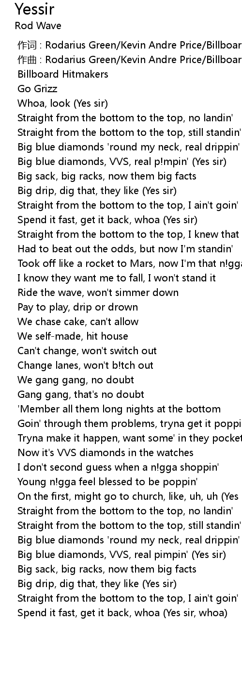 | [01:30.000] | Big drip, dig that, they like Yes sir |