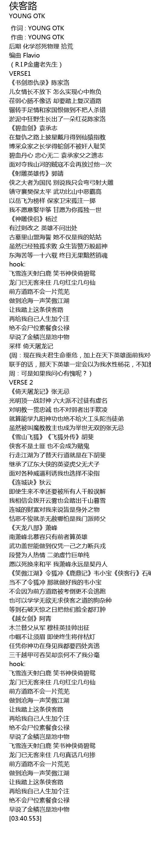 | [03:29.011] | 让我踏上这条侠客路 |
