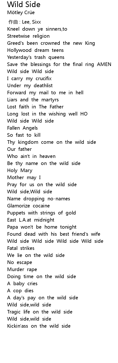 | [02:48.726] | Wild side Wild side Wild side Wild side |