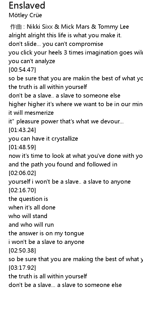 | [02:07.40] | yourself i won't be a slave.. a slave to anyone |