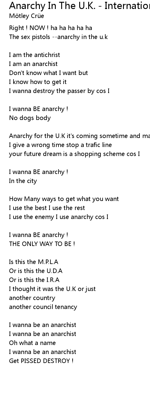 I wanna be an anarchist |