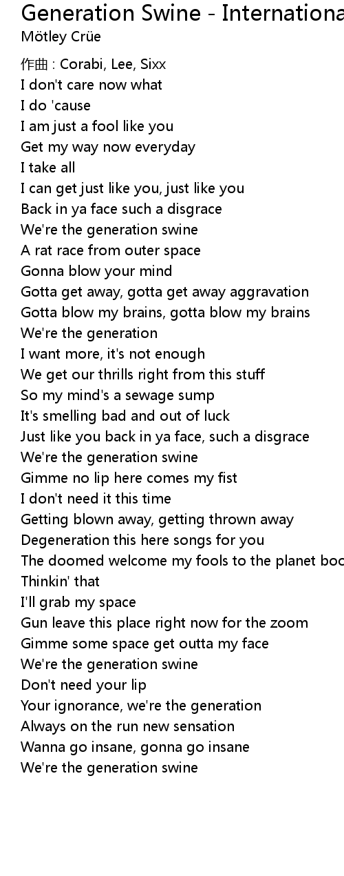 | Song | Generation Swine - International |