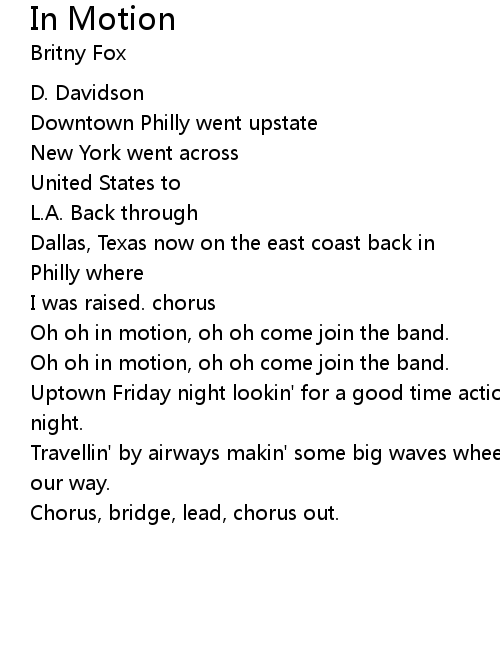 | Oh oh in motion, oh oh come join the band. | |
