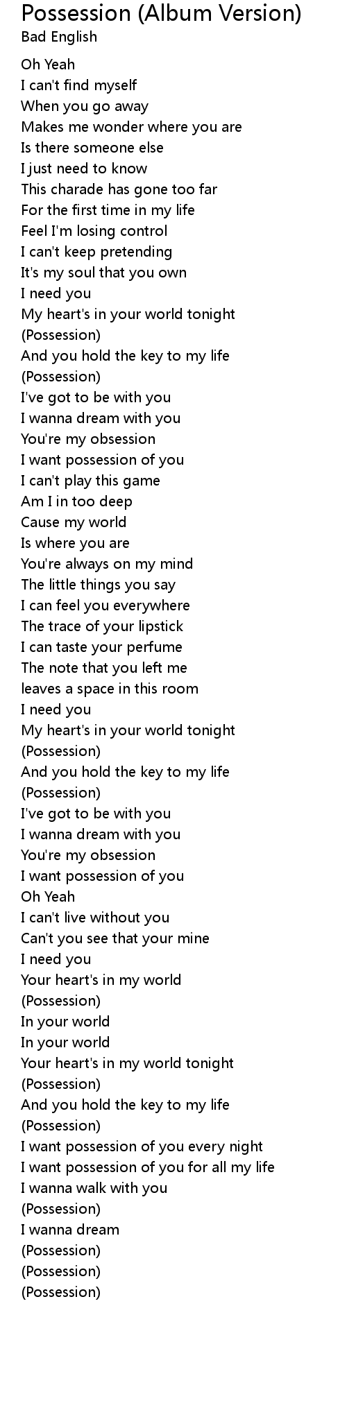 I want possession of you every night |