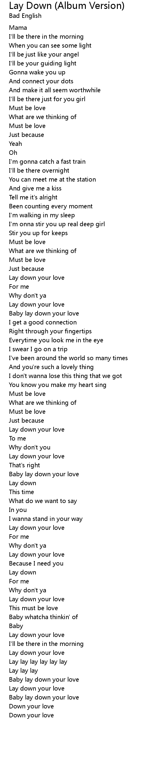 Baby lay down your love |