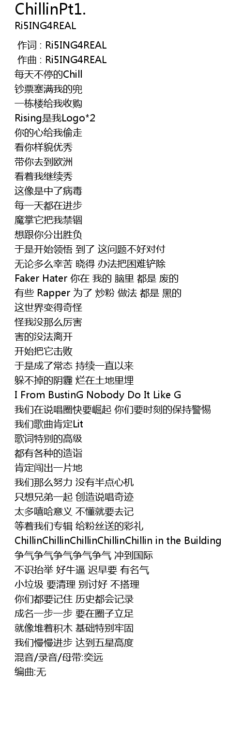 | [00:00.000] | 作词 : Ri5ING4REAL |