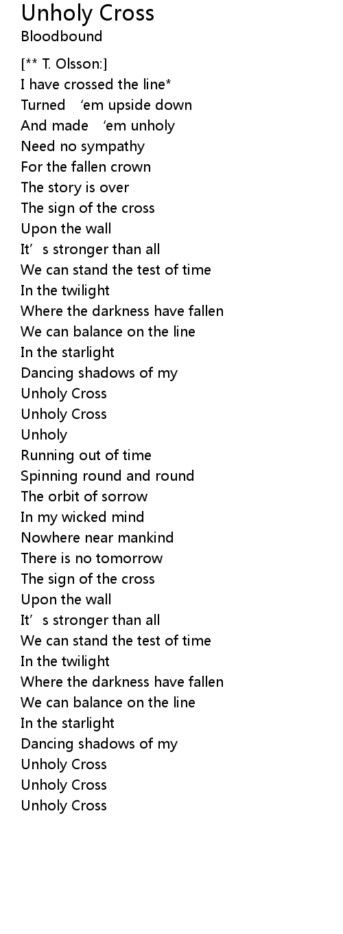 | Song | Unholy Cross |