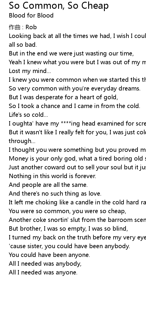 | But it wasn' t like I really felt for you, I was just cold and empty through and through... | |