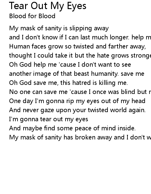 I'm gonna tear out my eyes |
