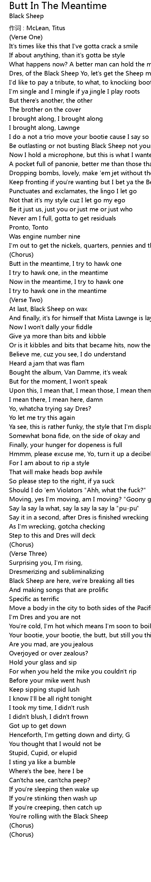 | Song | Butt In The Meantime |