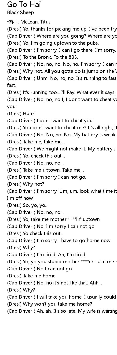 | (Cab Driver:) No. I'm sorry I can not go. | |
