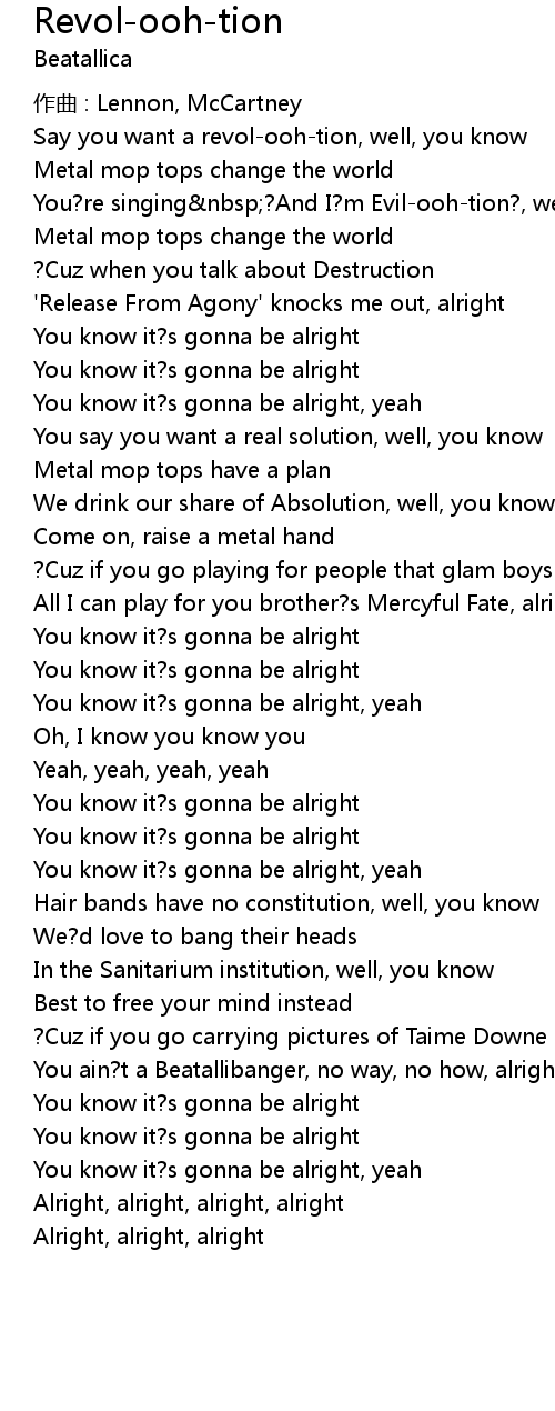 | Say you want a revol-ooh-tion, well, you know | |