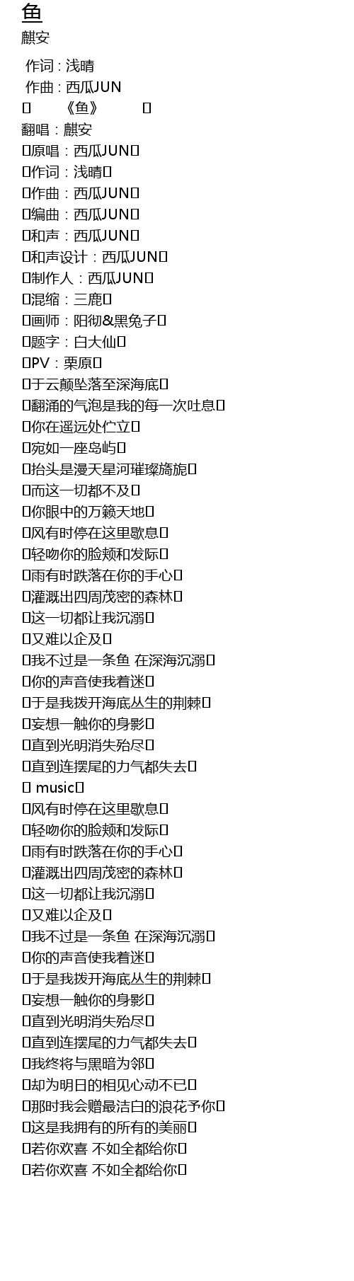 | [01:32.100] | ️我不过是一条鱼 在深海沉溺️ |