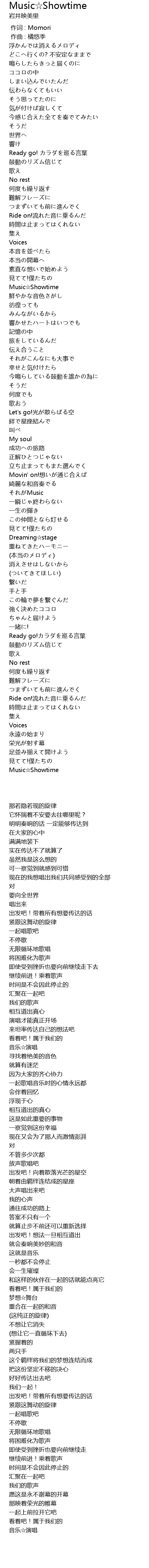 | [01:06.17] | Ride on!流れた音に乗るんだ |