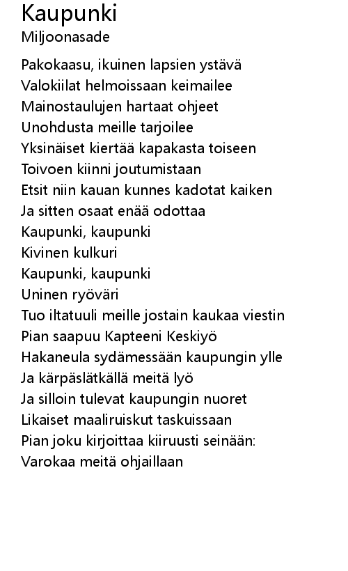 | Artist | Miljoonasade |