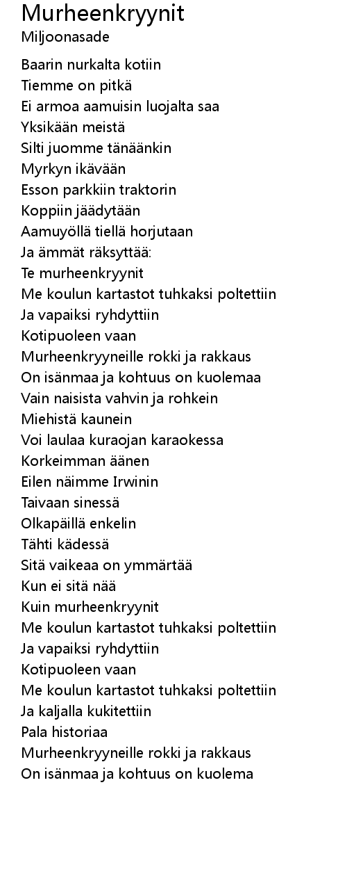 | Song | Murheenkryynit |