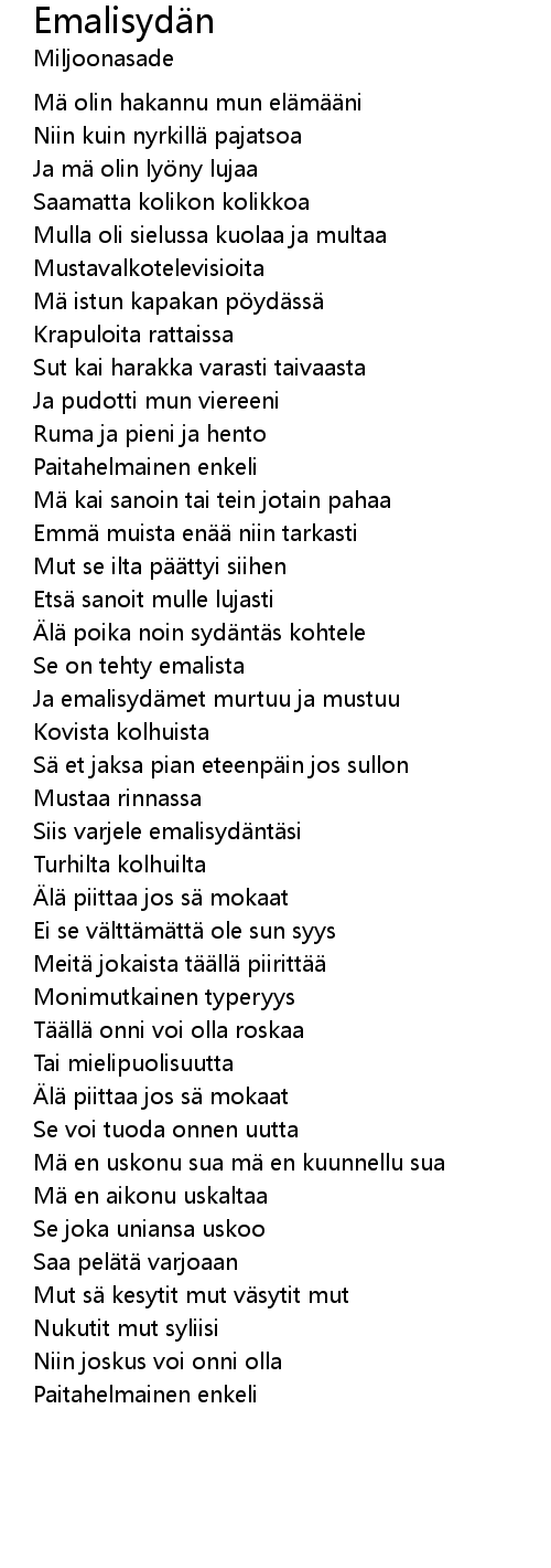 | Mä en uskonu sua mä en kuunnellu sua | |