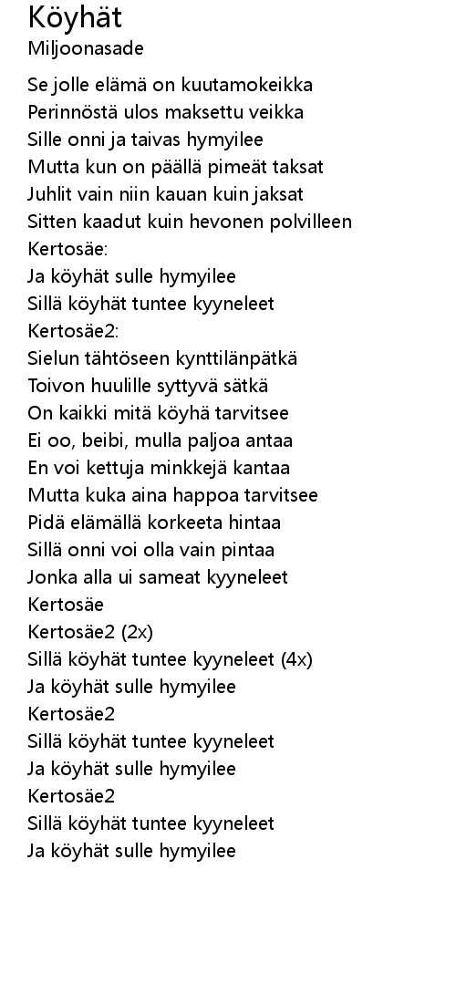 | Sillä köyhät tuntee kyyneleet (4x) | |