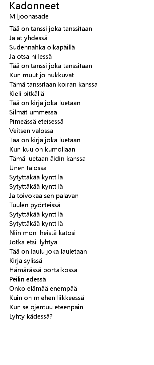 | Song | Kadonneet |