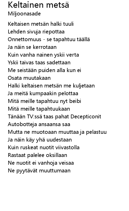 | Mutta ne muotoaan muuttaa ja pelastuu | |