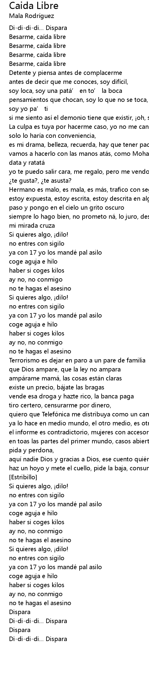 | siempre lo hago bien, no prometo na, lo juro, desde el otro lao del muro | |
