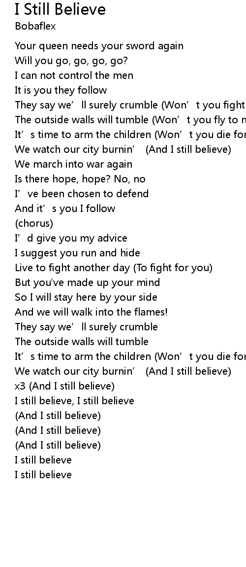 | I still believe, I still believe | |