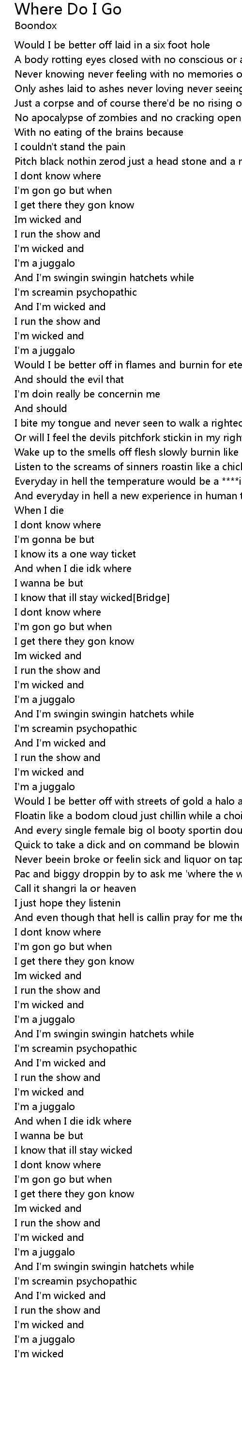 And when I die idk where |
