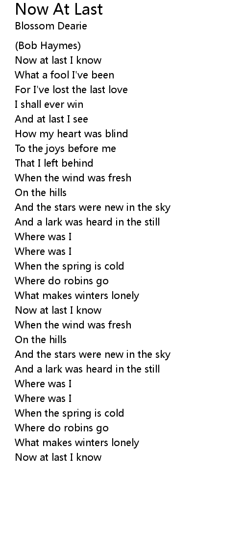 Now at last I know |