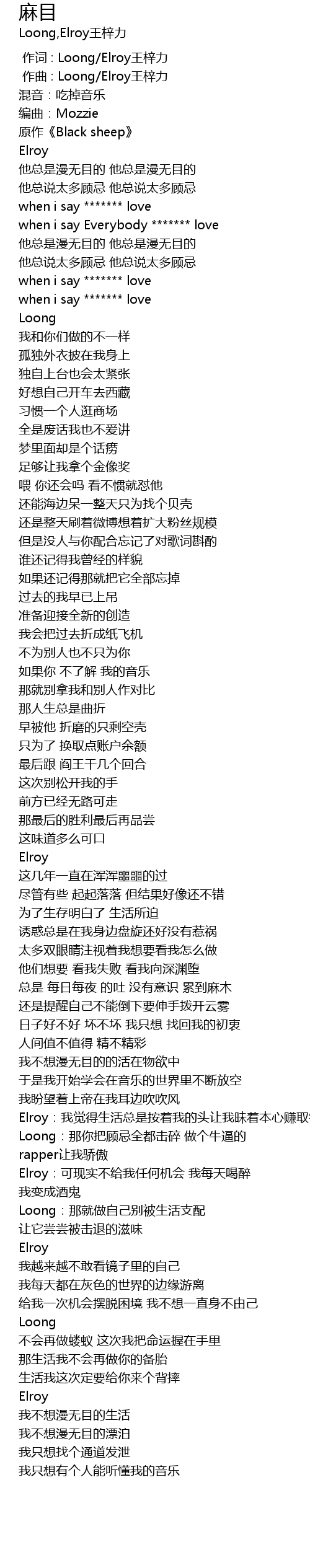 | [00:00.000] | 作词 : Loong/Elroy王梓力 |