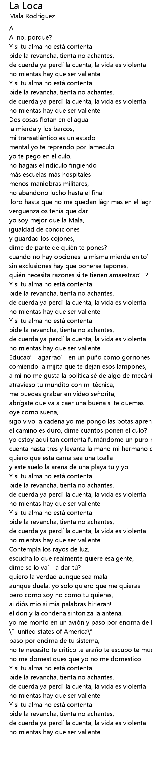 | de cuerda ya perdí la cuenta, la vida es violenta | |