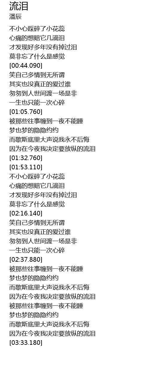 | [00:34.320] | 才发现好多年没有掉过泪 |