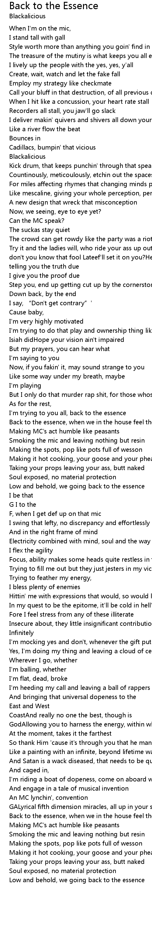 | Low and behold, we going back to the essence |