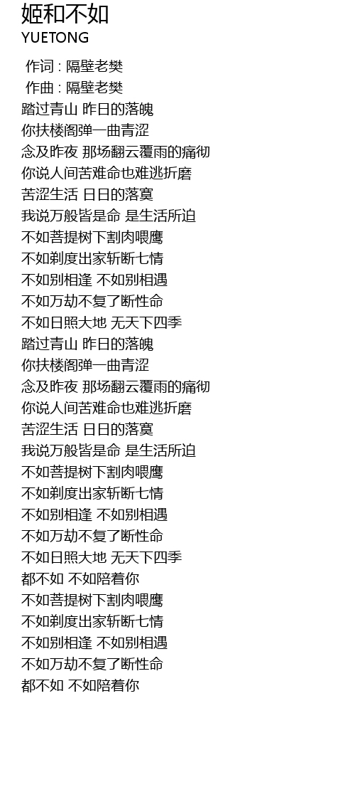 | [00:00.000] | 作词 : 隔壁老樊 |