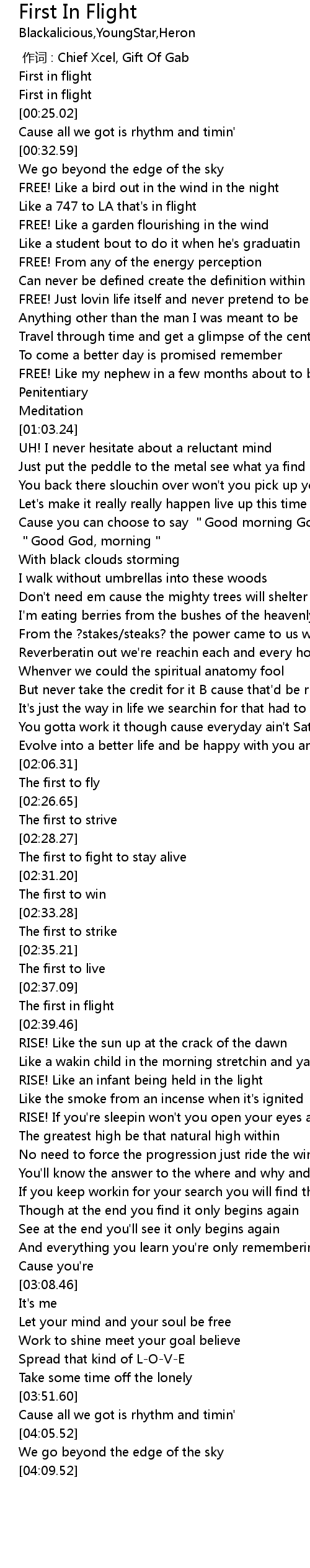 | [00:38.66] | Like a 747 to LA that's in flight |