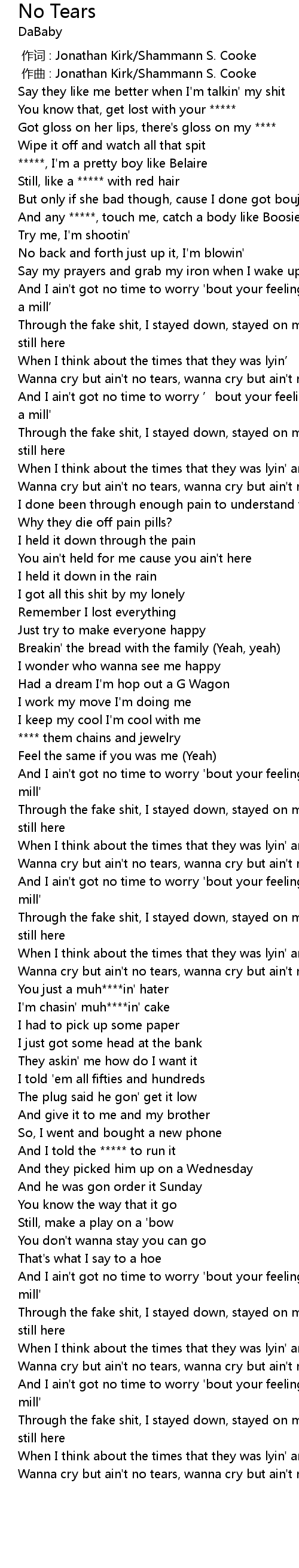 | [01:32.931] | Wanna cry but ain't no tears, wanna cry but ain't no tears |