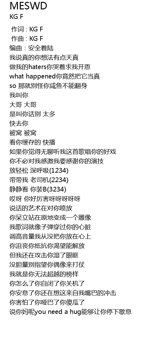 | [00:21.565] | 做我的haters你哭着求我开恩 |