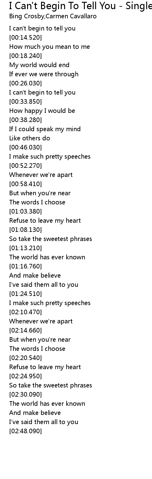 I can't begin to tell you |