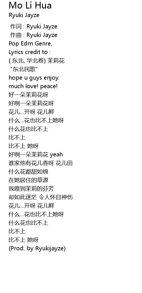 | [01:20.932] | hǎo liě yī duǒ mò lì huā yeah |