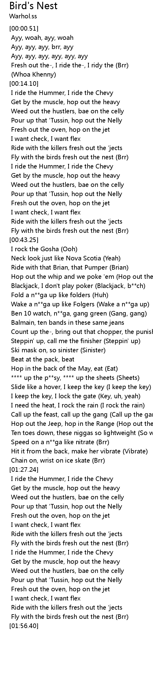 Fly with the birds fresh out the nest (Brr) |