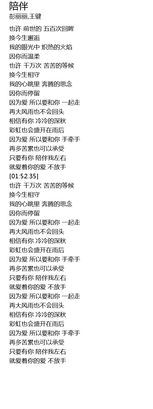 | [02:55.34] | 因为爱 所以要和你 手牵手 |