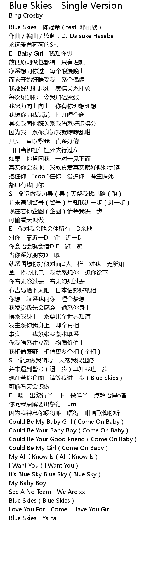 | [00:00.70] | Blue Skies - 陈冠希(feat. 邓丽欣) |