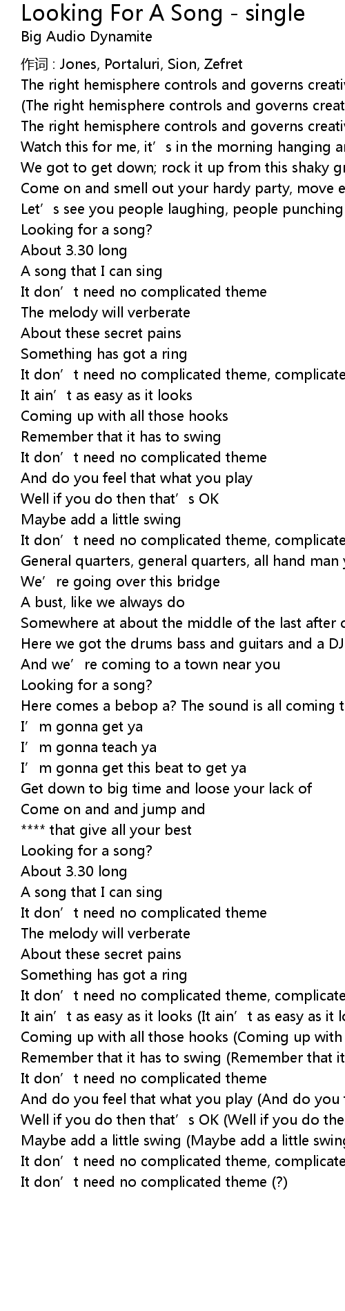 | Song | Looking For A Song - single |