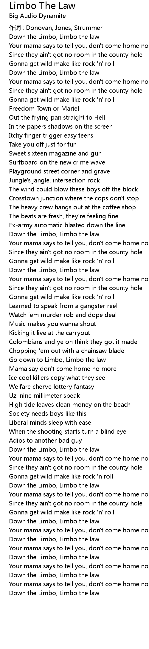 | Down the Limbo, Limbo the law |
