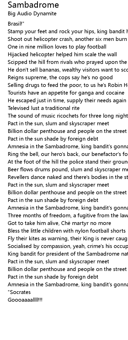 | Amnesia in the Sambadrome, king bandit's gonna sweat | |