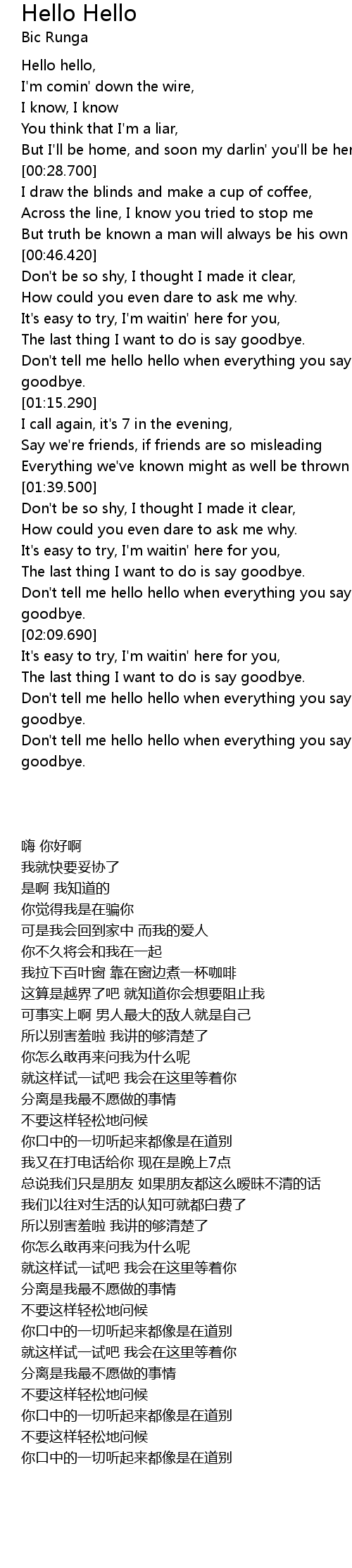 | [02:02.800] | Don't tell me hello hello when everything you say sounds like goodbye. |