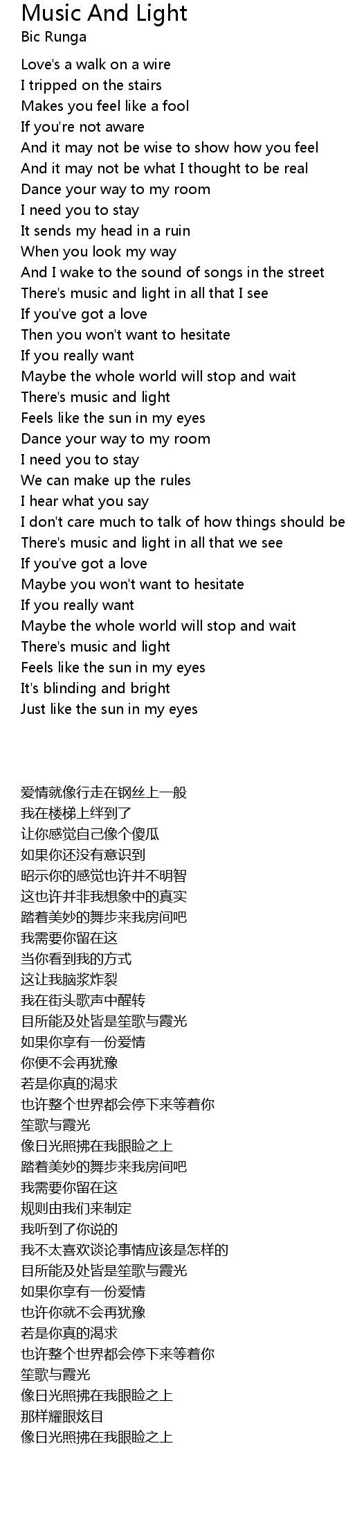 | [00:56.54] | And I wake to the sound of songs in the street |