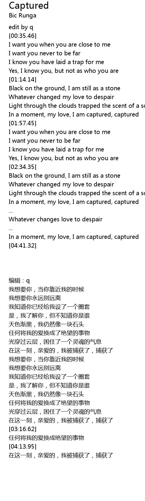 | [04:23.14] | In a moment, my love, I am captured, captured |