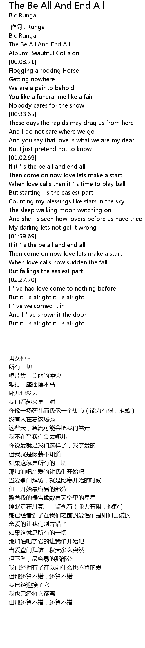 | [00:01.58] | The Be All And End All |