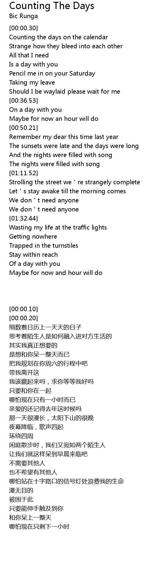 | [00:00.50] | Counting the days on the calendar |