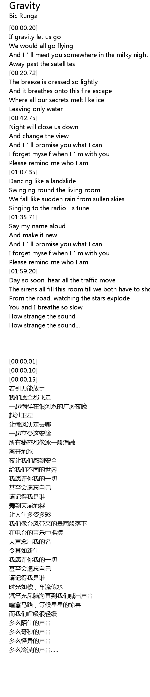 | [00:00.32] | If gravity let us go |